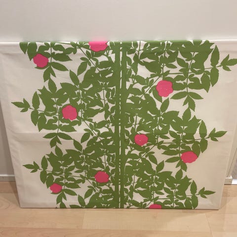 Marimekko koristekankaasta tehty taulu. Mitat L. 100cmx k. 73cm. Hinta 10€. Kulkeutuu Espoo Lommilaan