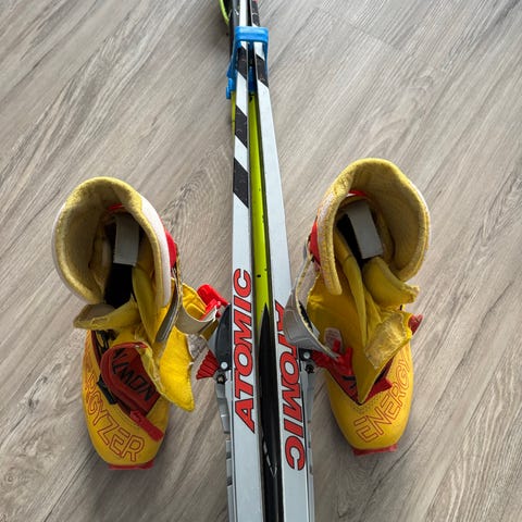 Vähän käytetyt Atomic sukset 184 cm, Salomon monot (43,5) ja Excel sauvat 157,5 cm myydään tarpeettomina.
