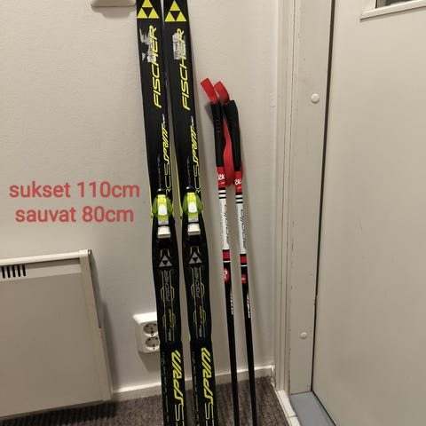 Lasten pitopohjasukset 110cm ja sauvat 85cm, siteet sns profiililla.