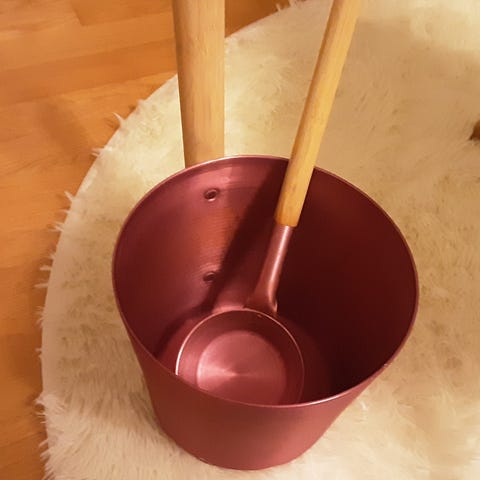 Saunakiulu+löylykauha, vuolukivinen lämpömittari ja vuolukiviset snapsilasit kaikki yhteensä vain.