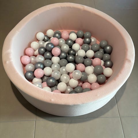 Lasten pehmeä pallomeri vaaleanpunaisella reunuksella. Sisältää monivärisiä palloja (harmaa, valkoinen, vaaleanpunainen). Pallomeri on hyvässä kunnossa, mutta kuten kuvista näkee, vaatii pesua. Viimeisin kuva on tahra, ei reikä, vaikka vähän siltä näyttää. Soveltuu sisäkäyttöön. Päällinen ja pallot ovat pestäviä. Pesu jää ostajalle, mikä otettu huomioon hinnassa. Koiratalous