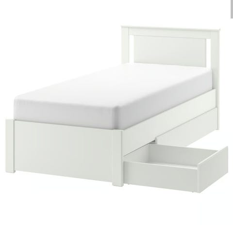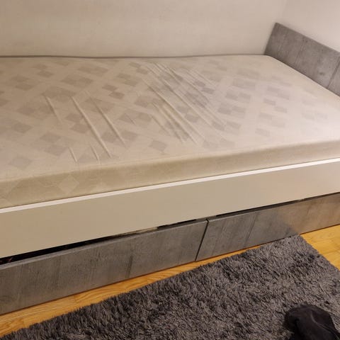 Sänkypaketti johon kuuluu runko + joustinpatja & petari. Todella vähällä käytöllä ollut, käytännössä kuin uudet. Sängyn rungossa kätevät laatikot alla.