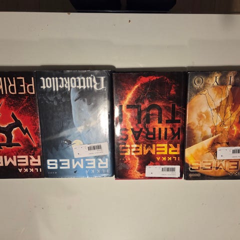 Myydään Remes kirjoja. 1 e/kpl, postituskulut 6,50 e. Nouto Nastonharju tai sovitusti Riihelä. Käteinen tai mobilepay.