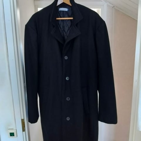 Erinomaisessa kunnossa oleva tyylikäs Riley Black villakangastakki. Ainoa moite sisäpuolella povitaskun reunassa (ks kuva). Varanapit mukana.