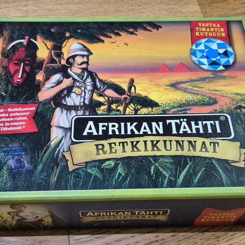 Afrikan tähti retkikunnat. Lisäosa Afrikan tähti lautapeliin. Ostettu vastikään torista mutta olikin liian monimutkaiset säännöt lasten kanssa pelaamiseen. Mielestäni oikein siistikuntoinen. Ainut miinus mitä huomasin niin kiekkoja puuttui parit (toisia 27/30 ja toisia 28/30) muuten lähes uudenveroinen peli.