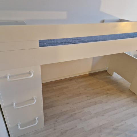 Myydään Muuramen korkea parvisänky. Laidoissa normaalia kulumaa. Käytössä ollut Ikean laita pojan toiveesta, kun korkean laidan kanssa oli hankalampi kulkea.