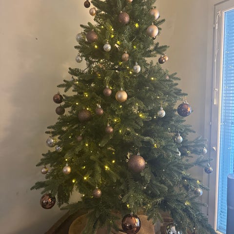 Myyn vanhan kuusen pois uuden tieltä. Ollut käytössä useamman vuoden, joten ”huurretta” on hieman irronnut vuosien saatossa, vaikka onkin hyvin kiinnitetty. Oksat saa aseteltua haluamallaan tavalla.