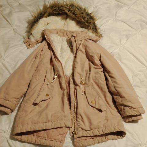 Myydään hyväkuntoinen HM:n toppatakki. Huppu on irroitettava. Nimikoitu nimikirjaimin.