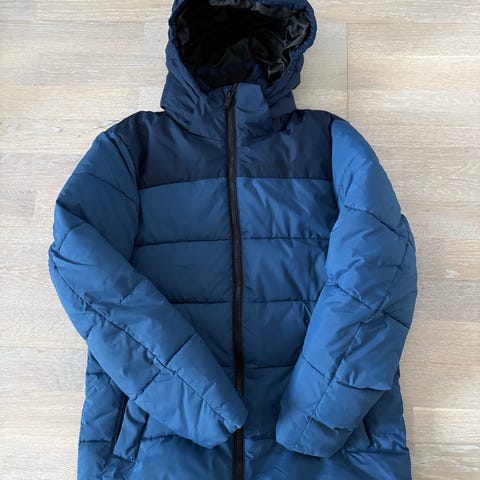 Hyväkuntoinen mustavalkoinen toppatakki koko 164. Lumiesteet hihoissa ja helmassa, irrotettava huppu. Hihassa pikkutasku. Nouto, voin myös tuoda Lippulaivaan tai Iso Omenaan.