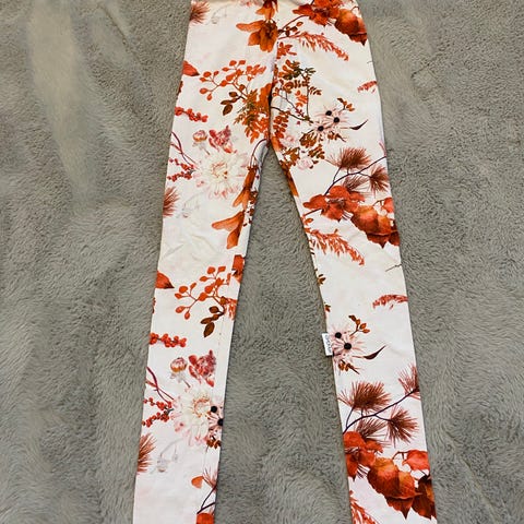 Gugguu lasten leggingsit koossa 146. Kukkkuvioiset leggingsit joissa on säädettävä vyötärö.