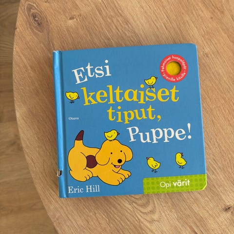 Puppe tuntee numerot -kirja. Paksut sivut sopii taaperolle. Ostettu meille uutena. Kulumaa ja puremajälkeä kansissa, sisäpuolelta siisti.