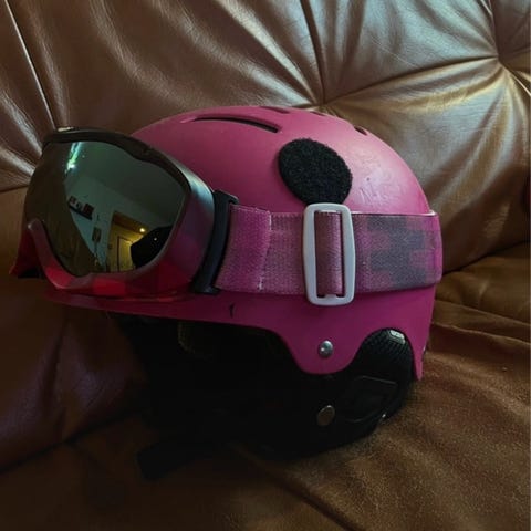Myydään laskettelukypärä 58cm (M) ja lasit.
