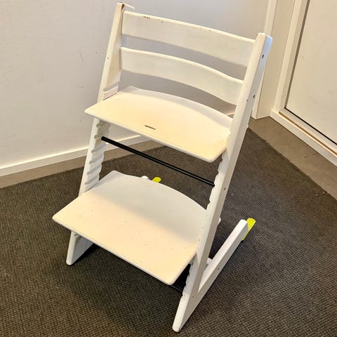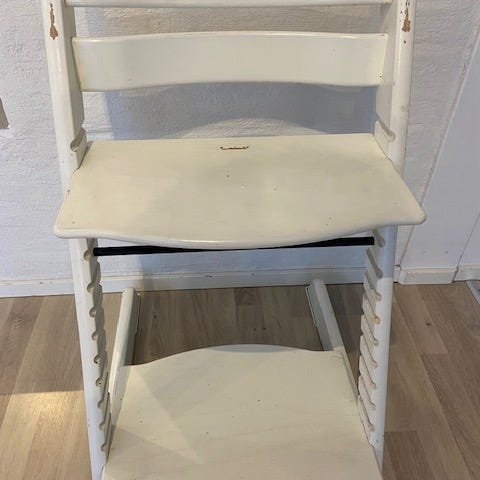 Kuvan kulunut tuoli kaatumatuilla. Kestää aikuisenkin painon kiivetä. Nouto.