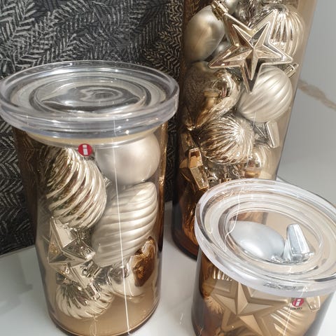 Iittalan punakannelliset, kirkkaat Jars-purkit (4 kpl) myydään yhdessä. Settiin kuuluu kaksi purkkia, joiden korkeus on noin 11 cm ja kaksi purkkia, joiden korkeus on noin 20 cm. Purkeissa on yhä alkuperäiset tarrat kiinni.