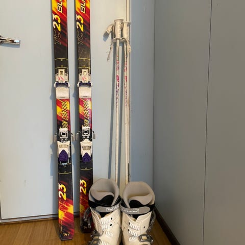 Toimivat vähän lasketut laskettelusukset. Suksiin sopivat monot myynnissä toisella ilmoituksella