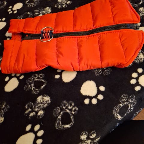 Myydään täältä ostettu koiran toppamantteli, koko arviolta 50-55cm