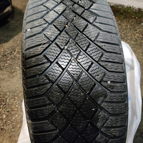 Pintaa jäljellä 5-6 milliä. Omakohtainen kokemus alkutalvesta oli että hyvin pitoa jäljellä, eli kumiseos on vielä kunnossa. Ei runkovaurioita.