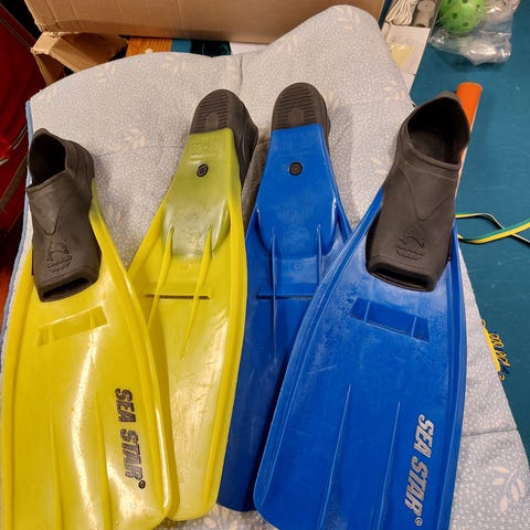 Uudet TECNOPRO räpylät. Hiukan isot lapsen 35-36 jalkaan. Räpylöiden koko 39-41. Säädettävä jalan kokoon. Saa säädettyä pienimmillään n.36-37 jalkaan.