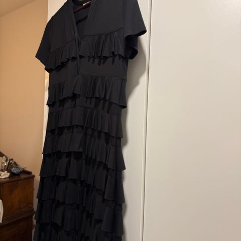 Myydään kaunis juhlamekko, väri beige, musta pitsi helmassa, koko S-M