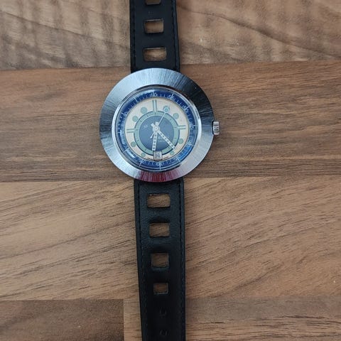Orion Calendar -rannekello, vintage sveitsiläinen mekaaninen kello, joka on todennäköisesti peräisin 1960- tai 1970-luvulta.