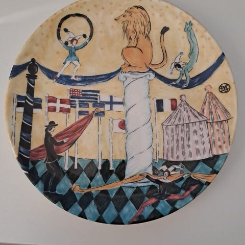 Raija Uosikkisen Arabialle suunnittelema Vesimies horoskooppirasia. Priimakuntoinen.