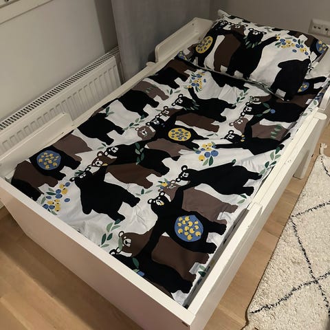 Muuramen Jolla jatkettava sänky + Lippo-säilytyslaatikko. Sängyn pituuden säätö 135-208 cm. Sopii myös kerrossängyn alasängyksi. Hyvässä käytetyssä kunnossa.