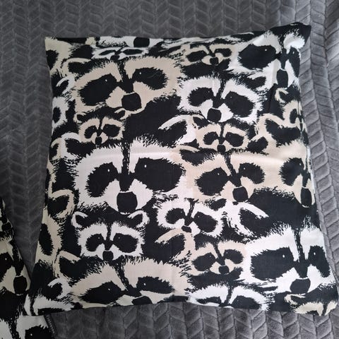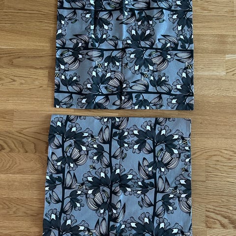 Kaksi kpl Finlaysonin koristetyynynpäällisiä. Harmaa kuvia valkoisella pohjalla. 100% puuvillaa.