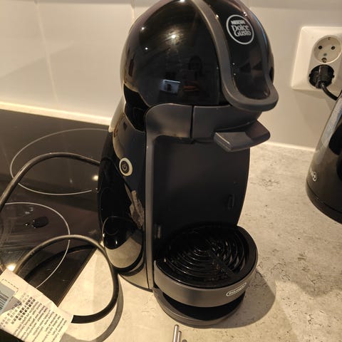 Nescafé Dolce Gusto kahvikone. Kahvikoneen väri on musta ja se on suunniteltu käytettäväksi Dolce Gusto -kahvikapseleiden kanssa.