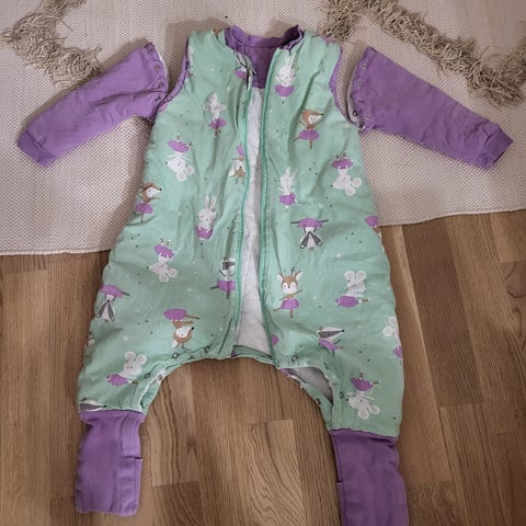 Myydään vähän käytetty Molis&Co unipussi / unihaalari (sleeping jumpsuit), jossa on irrotettavat hihat ja jalkojen päälle käännettävät "jarrusukat". Oli tosi kätevä, mutta oli meillä käytössä vain viime talven kylmimpinä öinä ja tänä talvena liian pieni. Tog 2.5 eli on tosi lämmin. Mukana säilytyspussi, joka hieman rikki (viimeinen kuva). Tuote on tämä: https://molisandco.com/en-eu/products/sleepingbags-with-feet-socks-and-sleeves-tog-2-5-wild-orchid?variant=49112232067408
