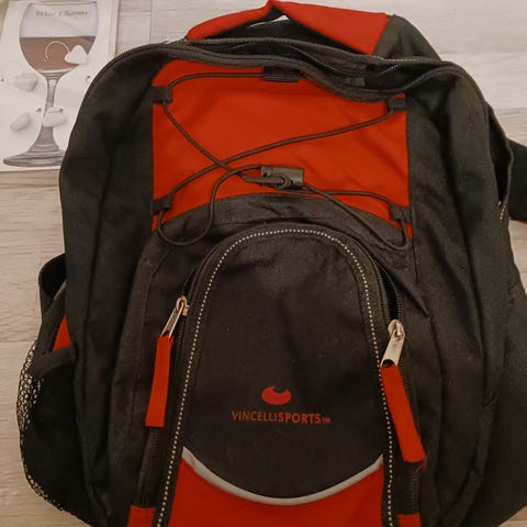 Reppu ehjä, vetoketjut ehjät, käytön jälkiä.