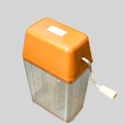 Retro vatkain, jossa on metalliset vispilät ja käsikäyttöinen vipu. Sopii ruoanlaittoon ja leivontaan vaikka veneeseen tai mökille. Tilavuus n. 1,2 litraa.