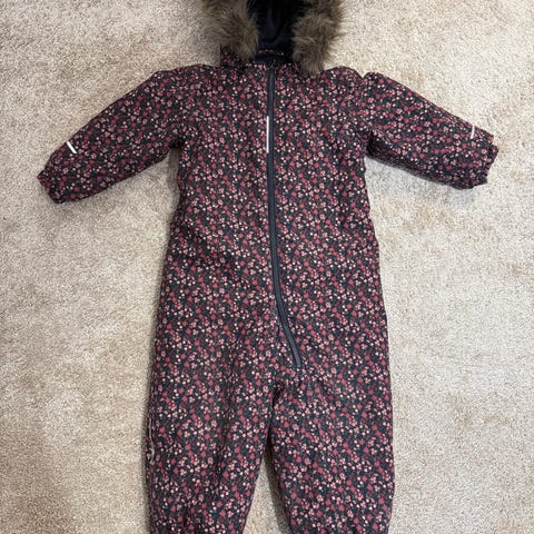 Name it Snow10 toppahaalari 98. Lämmin ja muhkea. Polvissa tummentumaa ja naarmuja, pepussa kevyttä kulumaa. Yhdellä lapsella käytössä ollut viime talvena, piti kuivana ja lämpimänä.