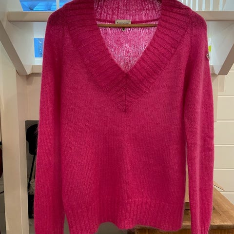 Moncler aito neulepusero, koko S, valmistettu puuvillasta. Käy myös hyvin XS kokoa käyttävälle. Pusero on punainen ja suunniteltu naisille. Siinä on pitkähihaiset hihat ja pyöreä pääntie. Käyttämätön, itselle olikin liian pieni. Ei kuittia tallella. Postitus sis. hintaan :)