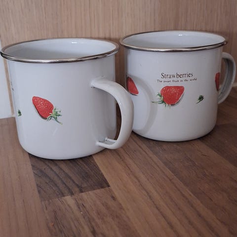 Sininen emalimuki.