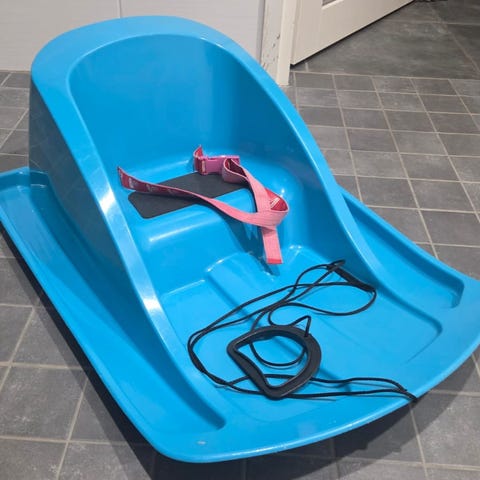 Annetaan kuvan vauvapulkka. Soljen klipsiosa puuttuu, muutoin ehjä.