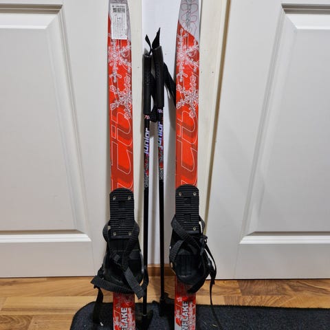 Lapsen Ensisukset siteillä joihin saa kengät kiinni. Sauvat mukaan. Löytyy myös hieman pidemmät ja paremmat mitä kuvassa. Samaan hintaan saa ne mukaan.