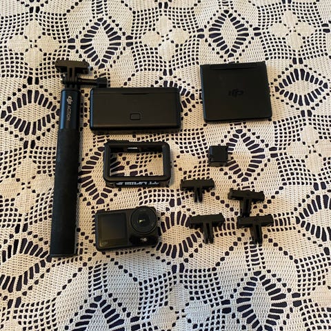 Vain muutaman kerran käytetty DJI Action 4 kamera, kaulateline ja 256gb muistikortti.
