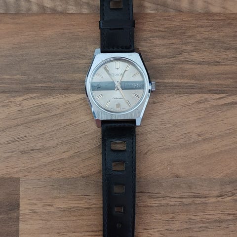 Orion UFO -rannekello, vintage sveitsiläinen mekaaninen kello, joka on todennäköisesti peräisin 1960- tai 1970-luvulta.