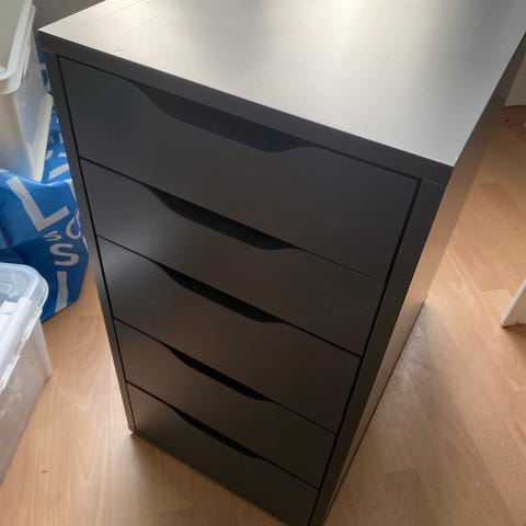 Ikea ALEX-laatikosta ja metalli jalka