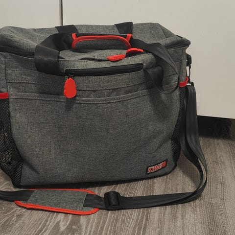 Kuljetuslaukussa on verkkokankaiset ikkunat ilmanvaihtoa varten ja vetoketjullinen ovi. Laukun päällä on kantokahva ja olkahihna. Laukun pohjan mitat: 30x50cm. Korkeus 37cm.