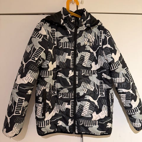 Takkia ei ole pesty, niin on edelleen pöyheä, en ole nähnyt tarpeelliseksi, tätä on käytetty parempana takkina. Jotain pientä likaa saattaa olla ja hihassa on jotain mustaa, katso kuva. Takissa irrotettava huppu.