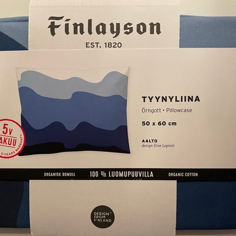 Myydään Eine Lepistön Finlaysonille suunnittelema Aalto esiliina. Koko 70x80cm, 100% puuvillaa.