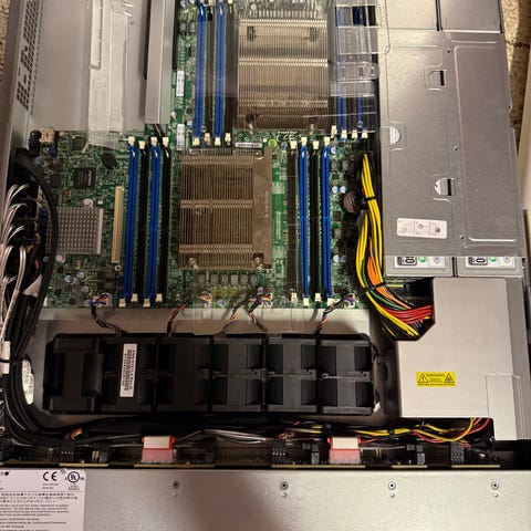 Myydään järeä Supermicron 1U-palvelinrunko. Tämä on erinomainen aihio esimerkiksi TrueNAS- tai Proxmox-palvelimeksi integroidun 10 Gbit/s verkon ja riittävien levypaikkojen ansiosta.