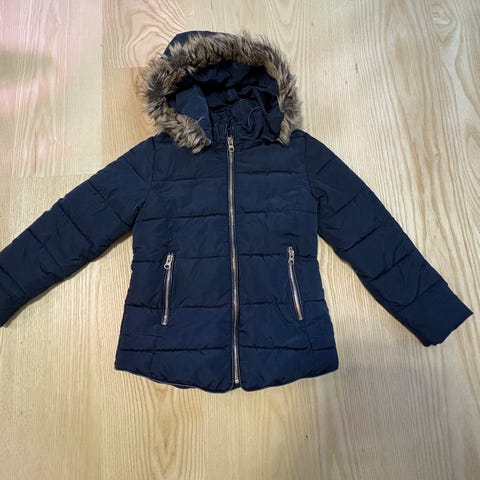 Zara talvitakki (untuvatakki) koossa 128. Käytetty parempana takkina. Ei mainittavaa kulumaa, mutta nappien sävy on uudesta muuttunut (viimeinen kuva).