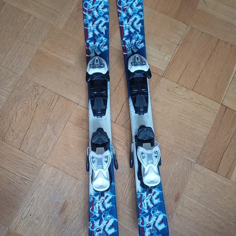 Lasten K2-merkkiset laskettelusukset Atomicin siteillä. Pohjissa pintajälkeä, ei syviä naarmuja. Laskee vielä monta kautta.