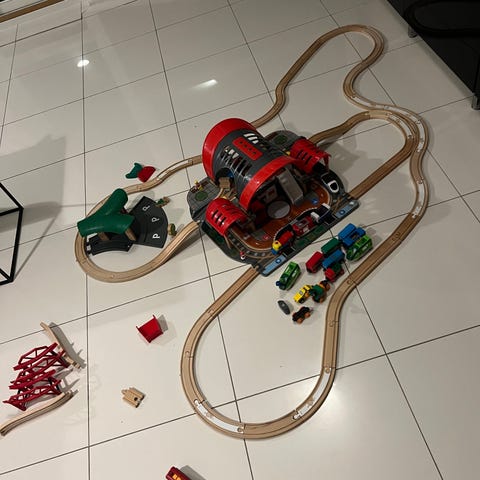 Hyväkuntoinen ja ehjä. Valo toimii, samoin toinen valo millä voi projisoida kaupunkien (4 kaupunki lätkää) kuvat. Katossa myös nauhoitus millä voi nauhoittaa omat ilmoitukset, tämäkin siis toimii hyvin. Sopii mm. Brion junaradan kanssa yhteen. Mukana ei tule junaradan osia tai muutakaan rekvisiittaa. Laitan mukaan "mäki" osat millä pääsee junat tuohon toiseen kerrokseen. Sijaitsee Vaiviossa ja kulkeutuu säännöllisesti omien menojen mukana Outokumpuun, Ylämyllylle ja Joensuuhun. Mmm. Postitus onnistuu myös.