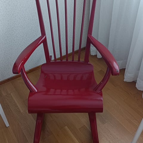 Kaunis ja tukeva vaalean sininen keinutuoli seuraavalle käyttäjälle. Eläin jyrsinyt takajalkoja, muuten kelpo. Varastossa tällä hetkellä, lisäkuvia pyydettäessä.