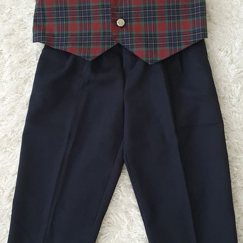Setti sisältää housut, dino-kauluspaidan, liivin, neuleen ja rusetin.