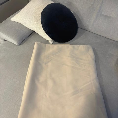 Toimivat pimentävät laskosverhot pidikkeineen ja ruuveineen, 2 kpl. Täysin avattuna korkeus 160 cm.