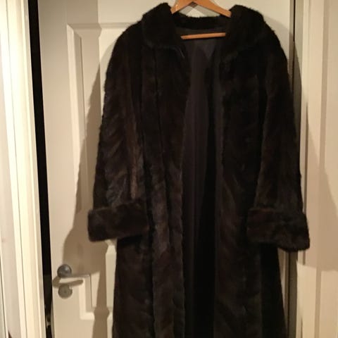Minkkipala turkki harmaasininen hyvässä kunnossa ,nahka hyvä ja ehjä , pitkä .Koko L